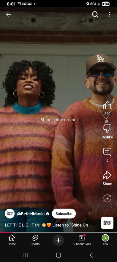 The photo below speaks for itself — I took it right after the notification came. The title of the video? “Let the Light In.” The song? “Shine on Me.”